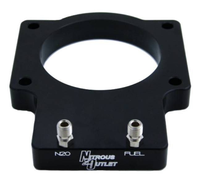 Wet Nitrous Plate. This system includes a billet aluminum plate to fit LS3 C6 Corvette 90mm intake and is capable of flowing up to 400 HP of nitrous. Each billet plate has a black anodized finish with a CNC engraved logo and fuel/nitrous labels.